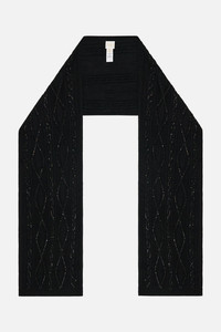 Designed in Australia, the Solid Black Jacquard Scarf dances with shimmering hues alongside a pearlescent ivory backdrop. Lovingly handcrafted, this CAMILLA Jacquard scarf is a luxurious statement piece. Adorned with shimmering crystals and finished with playful tassels it combines intricate jacquard patterns with a touch of sparkle. - CAMILLA Jacquard - Crystals - Extra Fine Merino Wool - 34CM X 200CM SKU 00035890-SOLIDBLA-O/S Size and Fit Our model wears a CAMILLA O/S and is 5'10 (178cm) tall. Her standard dress size is an AU 10. She has a 32in (83cm) bust, 35in (89.5cm) hips and a 25in (66cm) waist. Fabric and Care MAIN: 100% EXTRAFINE MERINO WOOL Characterised by an exquisitely soft and silky, yet substantial hand feel—Extrafine Merino Wool is remarkably comfortable against the skin. It retains its shape well over time, and offers a resilience to its knitted nature that makes its garments incredibly durable for day to day wear.
