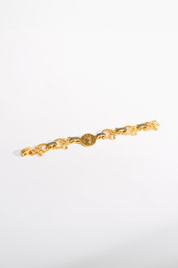 Designed in Australia, The Gold Fierce Folklore Coin Bracelet embraces ancient idols and modern heirlooms, forged in magic and dripping with signature iconography. This talisman features a coin detail, adorned with hand-cut cubic zirconia stones that radiate scintillating brilliance. A modern heirloom, it merges ancient enchantment with CAMILLA iconic allure, meticulously crafted for wild hearts and soul seekers. - Gilded In 18K Gold - Custom Design - Invisible Press Clasp for Clean Elevated Finish - Hand Cut Cubic Zirconia Stones - High Clarity And Brilliance - Coin Detail - Total Chain Length: 20cm SKU 00037687-GOLDSUNG-O/S Size and Fit Total Chain Length: 20cm Fabric and Care MAIN: 40% BRASS, 30% FRESHWATER PEARL, 15% CUBIC ZIRCONIA, 15% ENAMEL