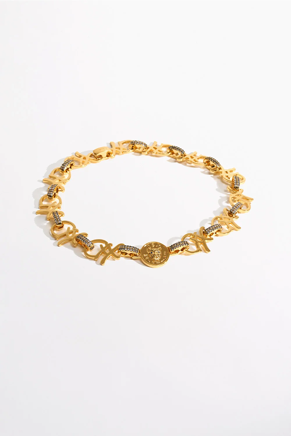 Designed in Australia, The Gold Fierce Folklore Coin Necklace embraces ancient idols and modern heirlooms, forged in magic and dripping with signature iconography. This talisman features a coin detail, adorned with hand-cut cubic zirconia stones that radiate scintillating brilliance. A modern heirloom, it merges ancient enchantment with CAMILLA iconic allure, meticulously crafted for wild hearts and soul seekers. - Gilded In 18K Gold - Custom Design - Invisible Press Clasp for Clean Elevated Finish - Hand Cut Cubic Zirconia Stones - High Clarity And Brilliance - Coin Detail - Total Chain Length: 42cm SKU 00037700-GOLDSUNG-O/S Size and Fit Total Chain Length: 42cm Fabric and Care MAIN: 40% BRASS, 30% FRESHWATER PEARL, 15% CUBIC ZIRCONIA, 15% ENAMEL