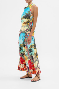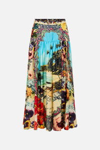 Designed in Australia, the Bathing Bombshell Fitted Waist Gathered Skirt evokes a vibrant symphony of blooms that encapsulate crystalline waves, sun-soaked moments linger as an ode to Portugal's decadent artistry. Lovingly handcrafted, this skirt celebrates structure and softness. A wide, fitted waistband leads to a flattering yoke, while gentle gathers create a mid-length piece full of effortless charm and refined movement. - Wide Fitted Waistband - Mid Length - Fitted Skirt Yoke - Gathered Skirt - SKU 00035042-BATHBOMB-XS Fabric and Care 100% SILK Silk twill is renowned for its diagonally-patterned weave and fluid texture. Its high thread count ensures rich density and durability, while its beautiful sheen provides a luscious touch to the skin.