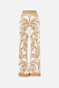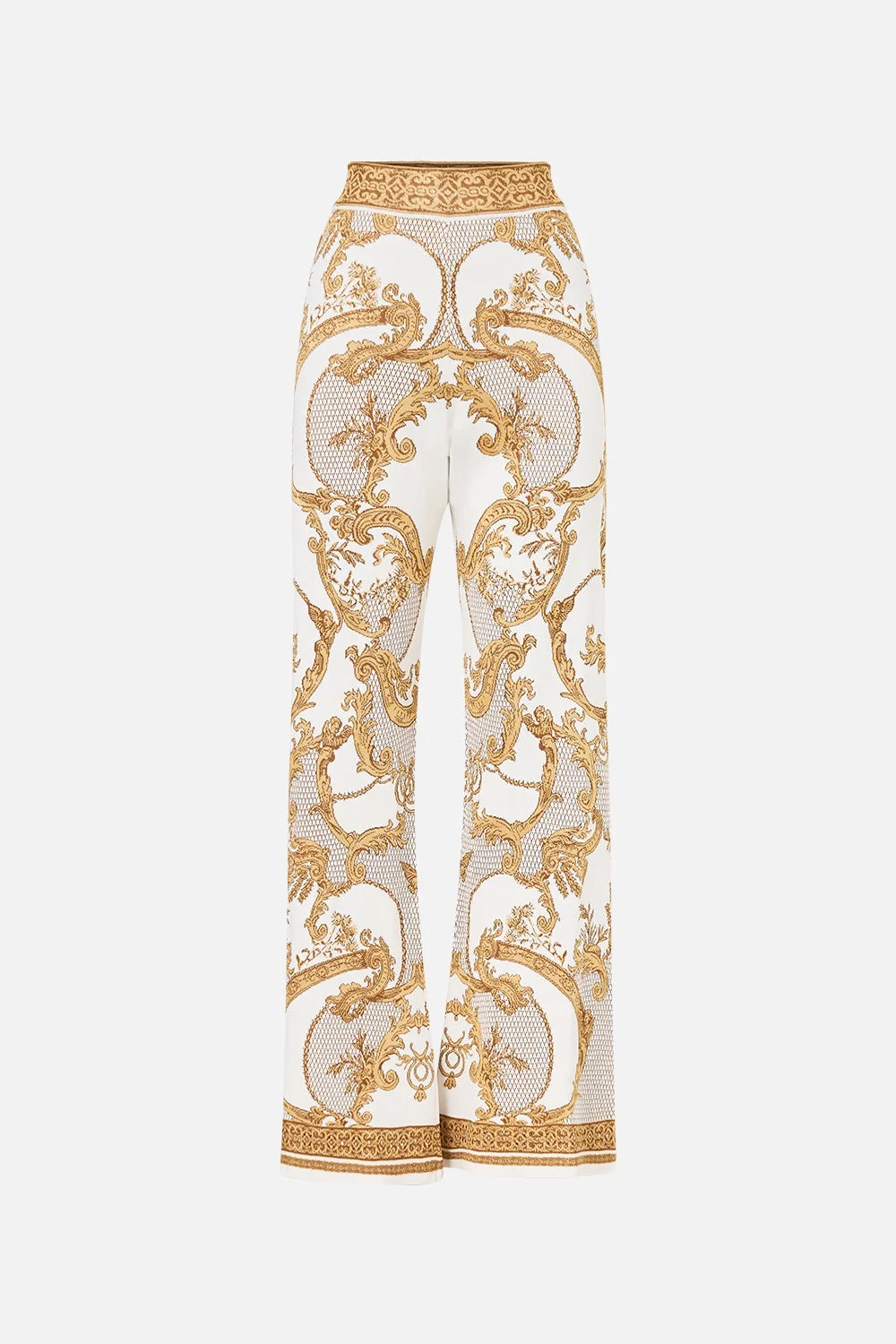 Designed in Australia, the Dressing Room Drama Flared Jacquard Knit Pant unveils a black base fused with florals and gilded arches, echoing the regal opulence of the Palace of Queluz—a poetic nod to throne rooms and the queen's dressing sanctuary. This luxury knit pant features a fitted high waisted silhouette that skims the curves to the knee and gently flares out into a full length hemline. - Jacquard Knit - Elasticated Waist - Flared Leg - Crystal Embellishment SKU 00039677-DRESDRAM-S Size and Fit Designed and fitted true to size, take your normal size. Fabric and Care 64% VISCOSE 22% POLYESTER 8% NYLON 6% METALLIC