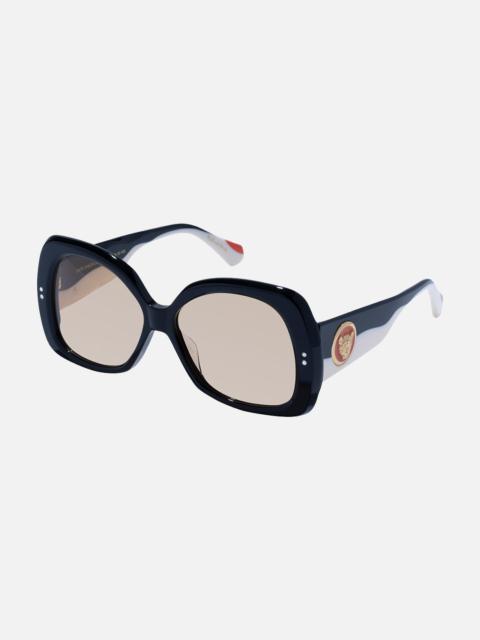 A necessity for jetset queens, seaside dreams or just dropping by to see and to be seen. These impossibly chic, retro-inspired cats eye frames are designed for those ‘thanks, they’re vintage’ moments. They're crafted in mint green acetate with sweeping butterfly curves and finished with intricate inlaid crystals and star iconography. Windows down, radio up, shades on. Punch it. Lovingly handcrafted,designed in Australia. - CAMILLA Accessories - Cr39 category 1 mint lenses - Crystals inlaid into front frame corner - Cat eye shape with butterfly curves - Packaged with CAMILLA printed hardcase and cleaning cloth - Medium size fit. Frame size MM: 54-19-145 - Frames are warranted for one year against manufacturing faults from the date of purchase. SKU 00033035-SOLIDMIN-O/S Fabric and Care 100% ACETATE
