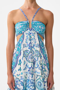 The Isnik Lullaby Gathered Cut Out Dress is a handcrafted silk silhouette designed by our in house artisans. Reimagined in an exclusive limited edition print, our panelled dress features statement U ring hardware and adjustable straps for a customized fit. A shirred back offers gentle stretch, while artful gathering sculpts the form with considered detail. - 100% Silk - U-Ring Hardware - Adjustable Straps - Panelled Dress - Back Shirred Elastic SKU 00036545-ISNILULL-XXS Size and Fit Our model is 5'10 (178cm) tall and wears a size S (AU 10). Bust: 40in (101.6cm) Waist: 26.5in (67cm) Hips: 38in (96.5cm) Designed and fitted true to size, take your normal size. Fabric and Care 100% SILK With its subtly textured surface, silk crepe is our core fabrication made perfect for versatile wear. With its ability to hold alternative ways to wear, this decadent fabric drapes elegantly off the body whilst keeping you cool with its breathable nature.