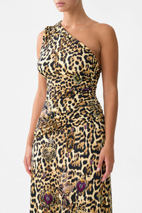 Designed in Australia, The Saints And Sisters Gathered Jersey One Shoulder Dress celebrates Portugal’s architectural grandeur with a touch of the wild—leopard print meets sacred artistry, blending nostalgia and wanderlust in every hand-illustrated design. Lovingly handcrafted, this one-shoulder jersey dress is enriched with gathered detailing through the body and a full flowing skirt, exuding understated elegance. - Viscose Jersey Stretch Fabric - One Shoulder - Gathering Over Shoulder And Through Body - Full Skirt - Crystal Embellishment - Non-Sheer SKU 00033707-SAINSIST-XXS Size and Fit Designed and fitted true to size, take your normal size Fabric and Care 92% VISCOSE 8% ELASTANE Viscose is a fibre crafted from the natural substance, cellulose, known for its softness, breathability and drape. It possesses a subtle sheen and is perfect for lightweight soft tailored silhouettes or more structured styles in heavier weights.