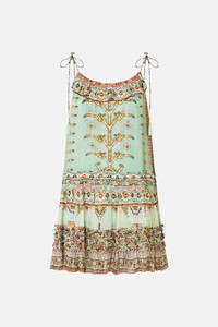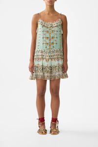 The Legend Has It Gathered Mini Tiered Dress With Frill Detail is a handcrafted silhouette designed by our in house artisans. Reimagined in an exclusive limited edition print, this mini dress is relaxed fitting with adjustable tie straps for versatility. It features frill detailing at the bust and is finished with gold lurex for luminous sparkle. - Relaxed Fit - Short Length - Adjustable Tie Straps - Bust Frill Detail - Gold Lurex Stripe Fabric SKU 00038639-LGNDHSIT-XS Size and Fit Our model is 5'10 (178cm) tall and wears a size S (AU 10). Bust: 40in (101.6cm) Waist: 26.5in (67cm) Hips: 38in (96.5cm) Fabric and Care 95%VISCOSE/5% LUREX