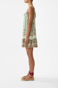GATHERED MINI TIERED DRESS WITH FRILL DETAIL