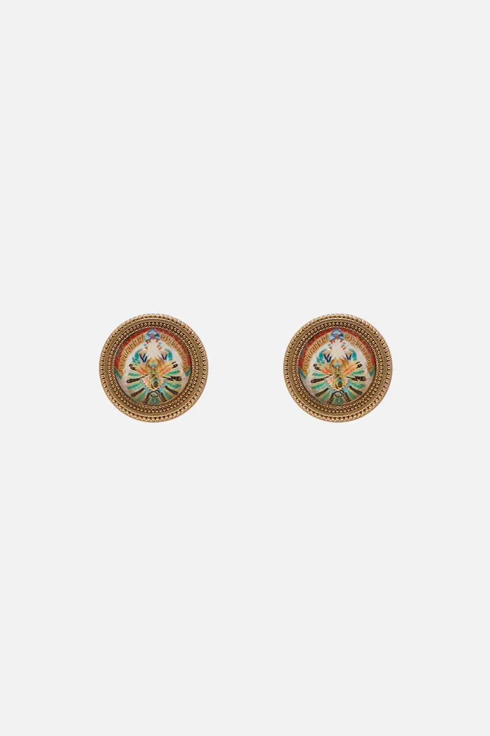 The Valley Of The Queens Gold Clothing Magnets emulates a world of sacred symbols etched amongst a canopy of luscious fronds, regal wings and ancient deities. This statement accessory is home to effortless magnetic fastening and flaunts bespoke print details on both sides. How To Use 1. Pull to separate your CAMILLA gold clothing magnets. 2. Prepare to style by folding, pulling, shortening or ruching your treasured CAMILLA garment to your desire. 3. Carefully pair the magnets to secure the style and transform your garment into multiple new shapes and silhouettes. Explore more from the House Of The Sun collection. - Lovingly Handcrafted - Designed in Australia - CAMILLA Accessories - Double sided camilla printed - Embossed gold edge - Magnetic closure - Multi way wearability SKU 00035490-VALLOTQU-O/S Size and Fit - One size style. Fabric and Care MAIN: 100% METAL ALLOY, MAGNET: 100% NEODYMIUM, OUTER: 100% GLASS