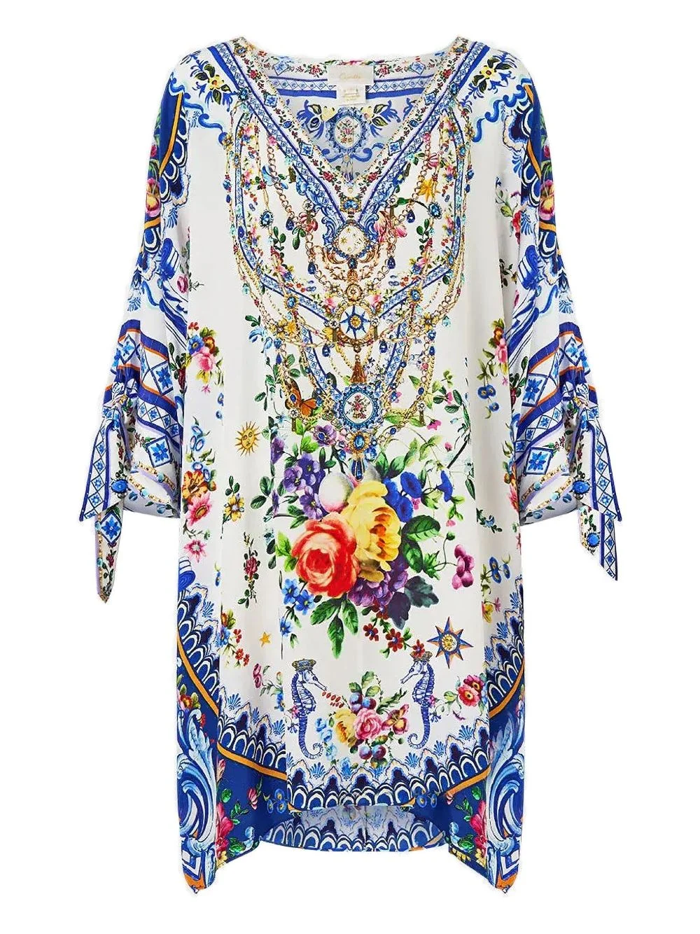 graphic-print mini dress Highlights - White/multicolour - Silk - Graphic print - V-neck - Tie-fastening straps Imported Composition Silk 100% Washing instructions Read Manufacturer Guidelines