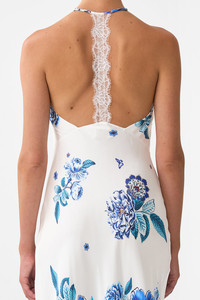 The A Ceramic Garden Halter Slip Dress With Lace Strap is a handcrafted silhouette designed by our in house artisans. Reimagined in an exclusive limited edition print, this slip dress is cut on the bias to effortlessly skim the form, effortlessly falling to a full length hemline. It features a soft cowl neckline and an open back framed by a delicate lace halter strap, with lace detailing that adds a whisper of romance from every angle. - 100% Silk - Bias Cut - Full Length - Open Back With Lace Detail - Cowl Neck SKU 00037048-CERAGARD-XXS Size and Fit Our model is 5'10 (178cm) tall and wears a size S (AU 10). Bust: 40in (101.6cm) Waist: 26.5in (67cm) Hips: 38in (96.5cm) Designed and fitted true to size, take your normal size. Fabric and Care 100% SILK CHARMEUSE Silk satin embodies a sumptuously smooth finish that offers a rich buttery touch to the skin. As a result of the satin weaving technique, it masterfully creates a fuller bounce to the body and drape details.