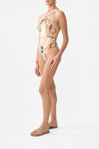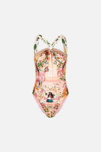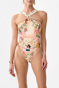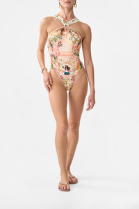 Designed in Australia, The Welcome To The White Lotus High Neck One Piece With Trims invites you to The White Lotus, where vibrant parrots and playful monkeys amid a pink plascid sky. Created in partnership with Lezio Lopez, the artist behind The White Lotus' opening credits. Lovingly handcrafted, this gorgeous one-piece combines structure and grace. Designed for A-C cups, it features removable soft cups, trim details, and a scoop back, all adorned with crystal embellishments. - Fits A-C Cup - Removable Soft Cups - High Neck With Soft Gathered Straps - Trim Detail On Front & Back - Scoop Back - Crystal Embellishment - ECONYL® swim SKU 00038002-HAWAIISH-XS Size and Fit Designed and fitted true to size, take your normal size Fabric and Care MAIN: 82% REGENERATED POLYAMIDE, 18% ELASTANE ECONYL® is regenerated nylon, crafted from waste materials that would otherwise end up polluting our Mother Earth. Its beauty lies in its ability to be recycled, remoulded and ultimately reused time and time again. An infinitely recyclable product that keeps our planet looking beautiful, it opens the door to a circular fashion sphere.