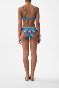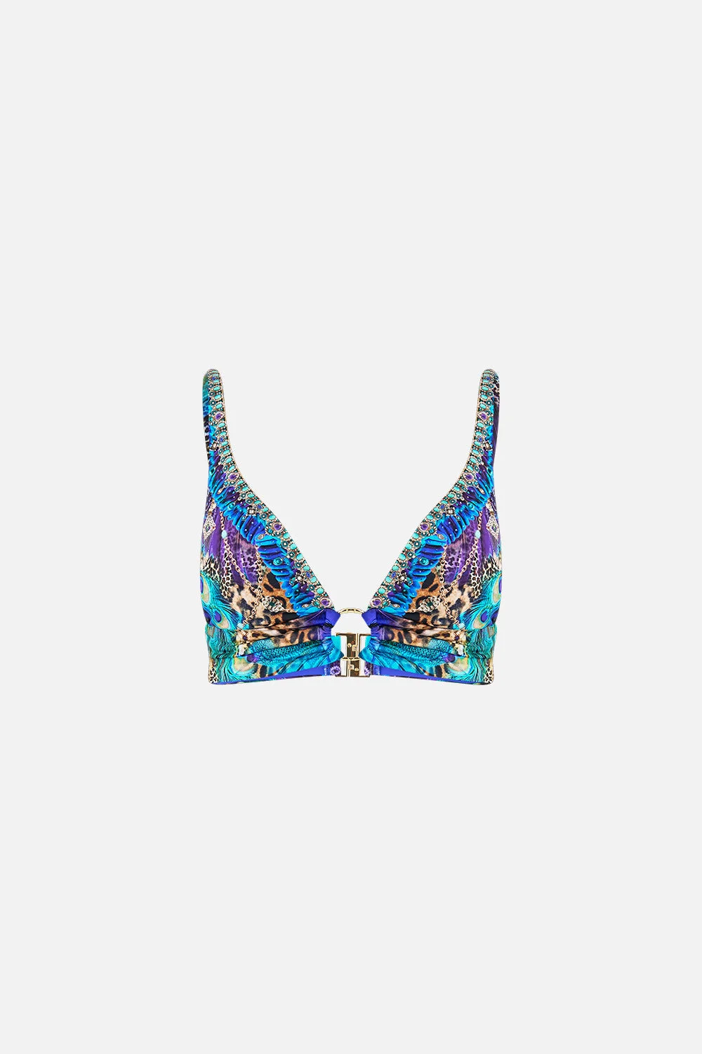 The Cosmic Zoology High Triangle Bikini Top With Ring Front is a handcrafted silhouette designed by our in house artisans. Reimagined in an exclusive limited edition print, our triangle bikini top is made with B to C cups in mind with soft removable cups. Adjustable, convertible straps and back clasp fastening offer a custom fit while gold ring hardware and intricately applied crystal embellishments add the finishing touch. - Fits B-C Cup - Removable Soft Cups - Gold Ring Hardware At Front - Adjustable And Convertible Straps, High Tri Neckline - Back Clasp Fastening - Crystal Embellishment SKU 00037517-COSMZOOY-XS Size and Fit Our model is 5'10 (178cm) tall and wears a size S (AU 10). Bust: 40in (101.6cm) Waist: 26.5in (67cm) Hips: 38in (96.5cm) Fabric and Care MAIN: 82% REGENERATED POLYAMIDE, 18% ELASTANE ECONYLÆ is regenerated nylon, crafted from waste materials that would otherwise end up polluting our Mother Earth. Its beauty lies in its ability to be recycled, remoulded and ultimately reused time and time again. An infinitely recyclable product that keeps our planet looking beautiful, it opens the door to a circular fashion sphere.