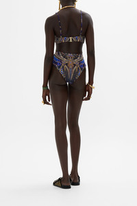 The Other Side Of The Oasis High Waist Pant With Trim illuminates a mesmerising world of oceanic blue plumes and patterns. This luxury onepiece swimsuit showcases a plunge front V neck. The streamline silhouette features a high cut leg that elongates the leg and removable soft cup gives added support to this lavishly opulent onepiece. Explore more from the House Of The Sun collection. - Lovingly Handcrafted - Designed in Australia - Sustainable Swim - Fits b-c cup - Removable soft cups - Halter neck tie and high leg line - Dry handle heavy weight fabrication - Sustainable swimwear SKU 00032417-OTHROSIS-XS Size and Fit Our model wears a CAMILLA S and is 5'10 (178cm) tall. Her standard dress size is an AU 10. She has a 32in (83cm) bust, 35in (89.5cm) hips and a 25in (66cm) waist. Camilla S = AU10 / UK10 / US6 Designed fitted true to size, take your normal size Fabric and Care 79% REGENERATED POLYAMIDE, 21% ELASTANE