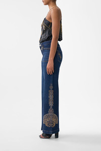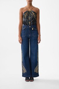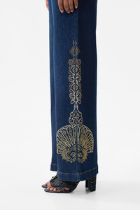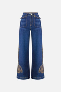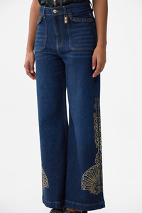 The Denim Jenna Istanbul Alchemy High Waisted Flare is a handcrafted cotton silhouette designed by our in house artisans. Reimagined in an exclusive limited edition print, our Jenna jean is cut high rise and tapers slightly before opening into a flared leg. Braided pocket edging and CAMILLA crystal embellishment add decadent details. - 100% Cotton - High Rise - Flared Leg - Braided Pocket Edging - Crystal Embellishment SKU 00041118-DENIM-24 Size and Fit Our model wears a CAMILLA 28 and is 5'10 (178cm) tall. Her standard dress size is an AU 10. She has a 32in (83cm) bust, 35in (89.5cm) hips and a 25in (66cm) waist. Camilla 28 = AU10 / UK10 / US6 Our More to Love Model wears a CAMILLA Size 34 and is 5'9 (182cm) tall. Her standard dress size is a AU 20. She has a 42in (107cm) bust, 35.8in (91cm) waist and 46in (118cm) hips. CAMILLA 34 = AU 16. Designed and fitted true to size, take your normal size. Fabric and Care 100% COTTON Crafted from sustainable cotton and natural fibres, CAMILLA Denim is sourced from by our certified family-run fabric mill in Turkiye, the denim capital of the world. Each luxury denim silhouette is masterfully cut and embellished by our manufacturer in Istanbul, which has a storied 60-year history of fine denim artistry.