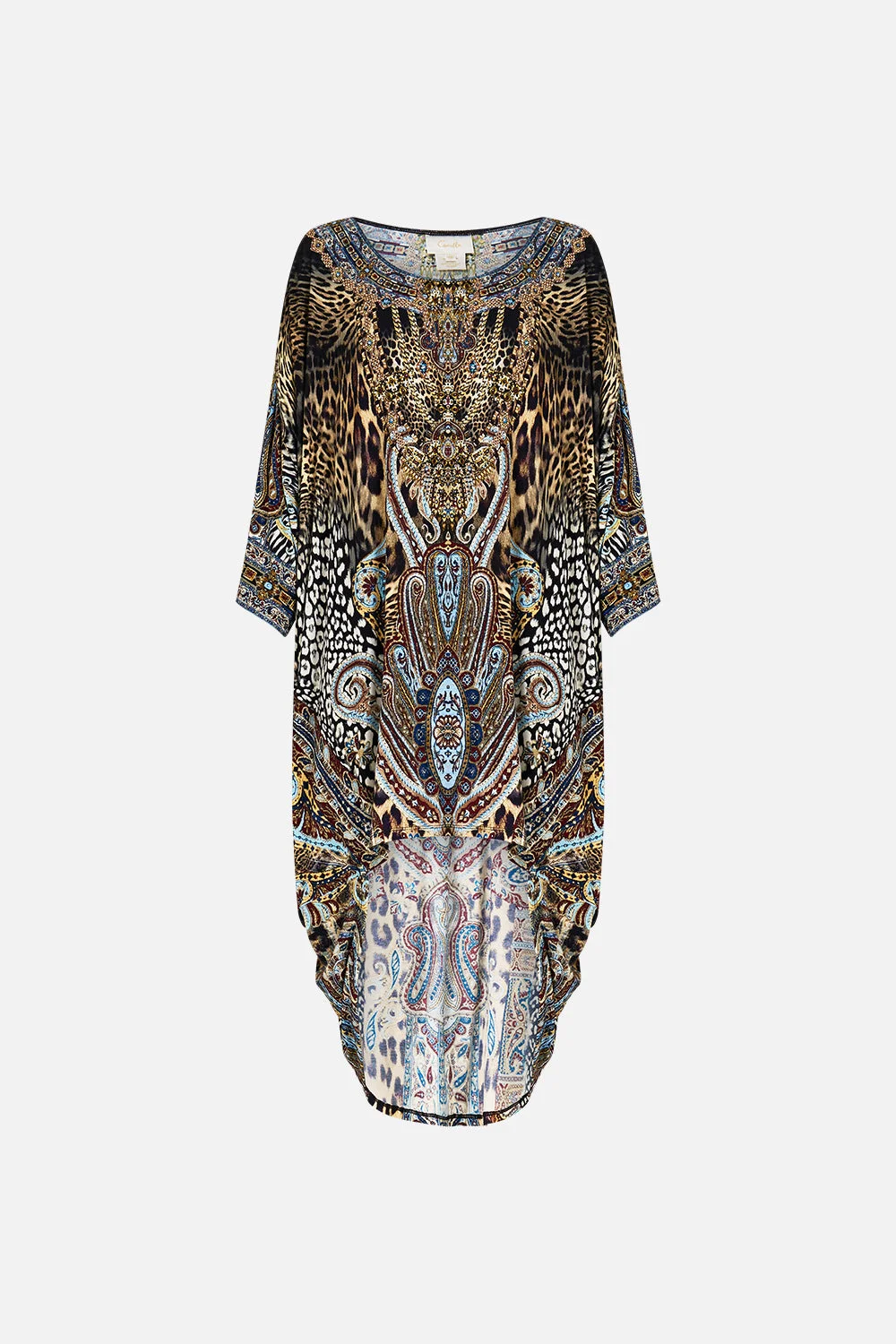 The Istanbul Animalia Jersey Scoop Back Hem Dress is a handcrafted silhouette designed by our in house artisans. Reimagined in an exclusive limited edition print, this dress is cut in a relaxed fit and features a round neckline and asymmetrical scooped back hemline. It' adorned with 3/4 length sleeves that dance below elbow length and its finished with intricately placed crystal embellishments for luminous detail. - Round Neckline - Relaxed Fit - 3/4 Length Sleeves - Asymmetric Hem SKU 00037271-ISTAANIM-O/S Size and Fit Our model is 5'10 (178cm) tall and wears a size S (AU 10). Bust: 40in (101.6cm) Waist: 26.5in (67cm) Hips: 38in (96.5cm) Designed as a relaxed fit. Take your normal size, or select one size smaller for a neater fit. Fabric and Care 95% MODAL 5% SPANDEX Modal is a bio-based fabric made from beech tree cellulose and considered as an eco-friendly alternative to cotton as production requires 10-20 times less water. Modal is exquisitely soft to the touch, breathable and very durable due to the long fibres and tight weave.