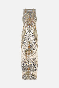 The Lady Lionheart Jersey Tank Dress is a handcrafted silhouette designed by our in house artisans. Reimagined in an exclusive limited edition print, this sleeveless dress features a timeless tank neckline that flows into a figure-hugging midi length. Meticulously designed to caress the curves and cinch the waistline for captivating comfort. - Sleeveless - Scoop Neck - Fitted Style - Crystal Embellishment SKU 00038776-LADYLION-XXS Size and Fit Our model is 5'10 (178cm) tall and wears a size S (AU 10). Bust: 40in (101.6cm) Waist: 26.5in (67cm) Hips: 38in (96.5cm) Designed and fitted true to size, take your normal size. Fabric and Care SHELL-95% COTTON 5% SPANDEX, CONTRAST-96% COTTON 4% ELASTANE