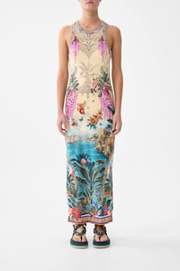 The Bodrum Botanicals Jersey Tank Dress is a handcrafted silhouette designed by our in house artisans. Reimagined in an exclusive limited edition print, this sleeveless dress features a timeless tank neckline that flows into a figure-hugging midi length. Meticulously designed to caress the curves and cinch the waistline for captivating comfort. - Sleeveless - Scoop Neck - Fitted Style - Crystal Embellishment SKU 00038916-BODRBOTA-XXS Size and Fit Our model is 5'10 (178cm) tall and wears a size S (AU 10). Bust: 40in (101.6cm) Waist: 26.5in (67cm) Hips: 38in (96.5cm) Designed and fitted true to size, take your normal size. Fabric and Care SHELL-95% COTTON 5% SPANDEX, CONTRAST-96% COTTON 4% ELASTANE