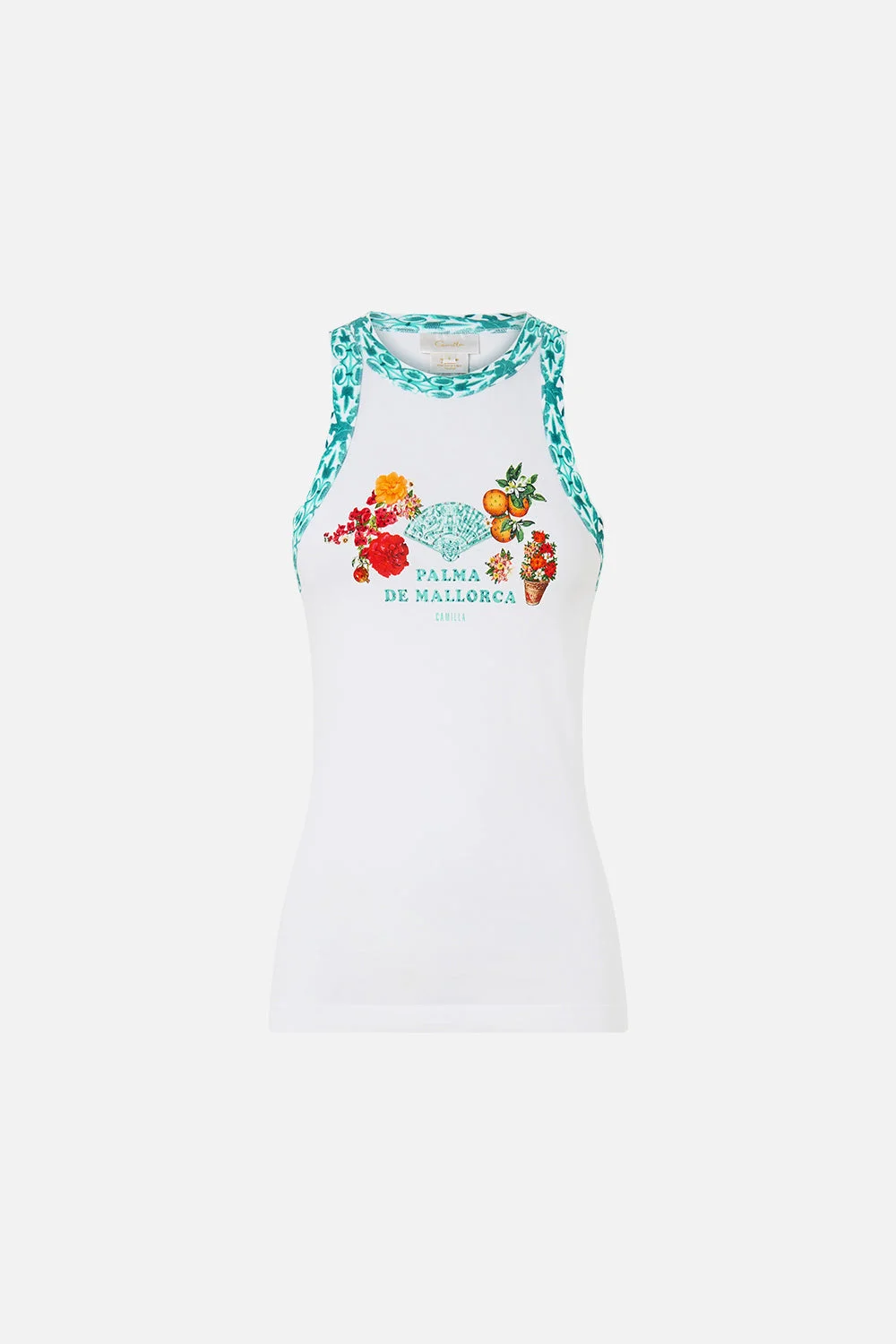 The Balearic BebE Jersey Tank Top is a handcrafted silhouette designed by our in-house artisans. Conceived in an exclusive limited edition print, our fitted cotton tank top features a scoop neckline and tank that contours the form. Effortlessly falling at a hip-length hem, crystal embellishment gjves it a finishing touch. - Scoop Neck - Fitted Style - Crystal Embellishment SKU 00040926-BALEBEBE-XXS Size and Fit Our model is 5'10 (178cm) tall and wears a size S (AU 10). Bust: 40in (101.6cm) Waist: 26.5in (67cm) Hips: 38in (96.5cm) Designed and fitted true to size, take your normal size. Fabric and Care 95% COTTON PIMA 5% SPANDEX, CONST- 96% COTTON 4% SPANDEX Our cotton jersey is a breathable, lightweight fabric. With a natural texture, it holds its shape gracefully and is perfect for soft, everyday silhouettes.