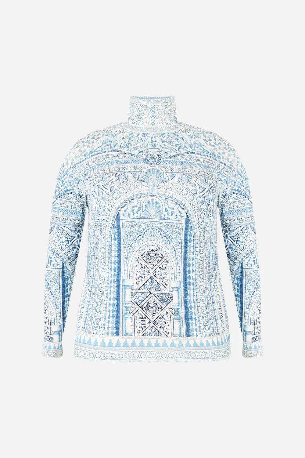 The The Hum Of The Alhambra Jersey Turtleneck is a handcrafted silhouette designed by our in-house artisans. Created in an exclusive limited edition print, our jersey turtleneck is sculpted by a soft structured neckline and long sleeves. It's finished with intricately placed crystal embellishment. - Turtle Neck - Long Sleeve - Stretch Fabric - Crystal Embellishment SKU 00040070-HUMOALHA-XXS Size and Fit Our model is 5'10 (178cm) tall and wears a size S (AU 10). Bust: 40in (101.6cm) Waist: 26.5in (67cm) Hips: 38in (96.5cm) Designed and fitted true to size, take your normal size. Fabric and Care 95% MODAL 5% SPANDEX Modal is a bio-based fabric made from beech tree cellulose and considered as an eco-friendly alternative to cotton as production requires 10-20 times less water. Modal is exquisitely soft to the touch, breathable and very durable due to the long fibres and tight weave.