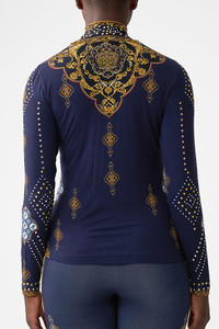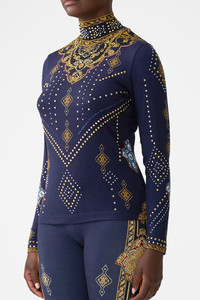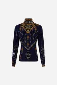 The The Imperial Gate Jersey Turtleneck is a handcrafted silhouette designed by our in house artisans. Reimagined in an exclusive limited edition print, our jersey turtleneck is sculpted by a soft structured neckline and long sleeves. It's finished with intricately placed crystal embellishment. - Fitted Body - Long Sleeve - Turtle Neck - Crystal Embellishment SKU 00036619-IMPEGATE-XXS Size and Fit Our model is 5'10 (178cm) tall and wears a size S (AU 10). Bust: 40in (101.6cm) Waist: 26.5in (67cm) Hips: 38in (96.5cm) Designed and fitted true to size, take your normal size. Fabric and Care 95% MODAL 5% SPANDEX Modal is a bio-based fabric made from beech tree cellulose and considered as an eco-friendly alternative to cotton as production requires 10-20 times less water. Modal is exquisitely soft to the touch, breathable and very durable due to the long fibres and tight weave.