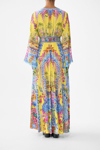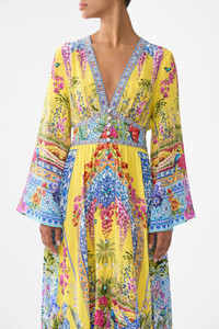 The Sultanahmet Summer Kimono Sleeve Dress With Shirring Detail is a handcraftedsilk silk silhouette designed by our in house artisans. Reimagined in an exclusive limited edition print, our kimono sleeve maxi dress is an ode to feminine form and refined drama. A softly bloused bodice tapers into a defined waistband with a delicate button-front closure, creating shape and balance. Its full-length skirt falls in gentle gathers and sweeping kimono sleeves flare at the wrists. Its finished with intricately placed crystal embellishments for luminous detail. - 100% Silk - Fitted Waistband - Full Length - Kimono Sleeve - Button Front Closure - Crystal Embellishment SKU 00038563-SULTSUMM-XXS Size and Fit Our model is 5'10 (178cm) tall and wears a size S (AU 10). Bust: 40in (101.6cm) Waist: 26.5in (67cm) Hips: 38in (96.5cm) Designed as a relaxed fit. Take your normal size, or select one size smaller for a neater fit. Fabric and Care 100% SILK Designed as a relaxed fit. Take your normal size, or select one size smaller for a neater fit.