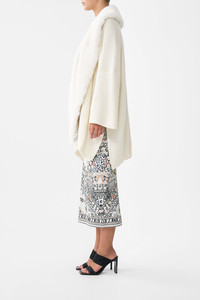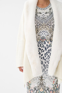 Designed in Australia, the Marble Heaven Knit Relaxed Layer With Faux Fur dances between leopard prints and marble textures, patterns that glint with opulence, evoking whispers of lost artisans and their inspired creations. Lovingly handcrafted, this luxury knit cardigan features a generously relaxed fit throughout the body with an open neckline, side splits, and wide statement drop sleeves that flare at the wrist line. - True Knit - Faux Fur Stole Detail - Relaxed Shape - Mid Length SKU 00038029-MARBHEAV-O/S Size and Fit Our model wears a CAMILLA O/S and is 5'10 (178cm) tall. Her standard dress size is an AU 10. She has a 32in (83cm) bust, 35in (89.5cm) hips and a 25in (66cm) waist. Designed as a relaxed fit—take your normal size, or select one size smaller for a neater fit. Fabric and Care 57% NYLON 37% ACRYLIC 6% WOOL