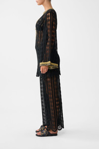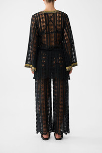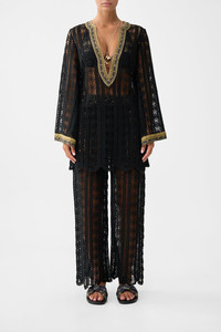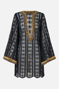 The Song Of The Solstice Lace Deep V Neck Hardware Short Dress is a handcrafted cotton silhouette designed by our in house artisans. Reimagined in an exclusive limited edition print, our short lace dress is crafted as a throw over for swim styling. It features long flared sleeves and a deep V neckline adorned with statement hardware. - 100% Cotton - Woven Lace Fabric - Short Length Throw Over Swim Styling - Long Flared Sleeve - Deep V Neckline With Hardware Detail SKU 00039620-SONGSOLS-XS Size and Fit Our model is 5'10 (178cm) tall and wears a size S (AU 10). Bust: 40in (101.6cm) Waist: 26.5in (67cm) Hips: 38in (96.5cm) Fabric and Care SELF-100% COTTON CONTRAST-100% SILK