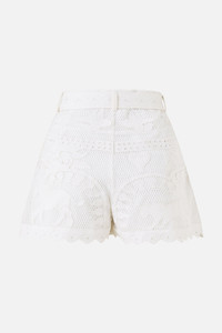 The Kapadokya Kitsch Lace Tuck Front Short is a handcrafted silhouette designed by our in house artisans. Reimagined in an exclusive limited edition print, these luxurious shorts feature front tucks, pockets and a removable belt for styling versatility. Its finished with a zip and button closure for effortless wear and decorated with intricately placed crystal embellishments. - 100% Cotton - Waistband - Front Tucks - Zip And Button Closure - Removable Belt - Pockets - Embroidery Details SKU 00038313-KAPAKITC-XS Size and Fit Our model is 5'10 (178cm) tall and wears a size S (AU 10). Bust: 40in (101.6cm) Waist: 26.5in (67cm) Hips: 38in (96.5cm) Designed and fitted true to size, take your normal size. Fabric and Care 100% COTTON