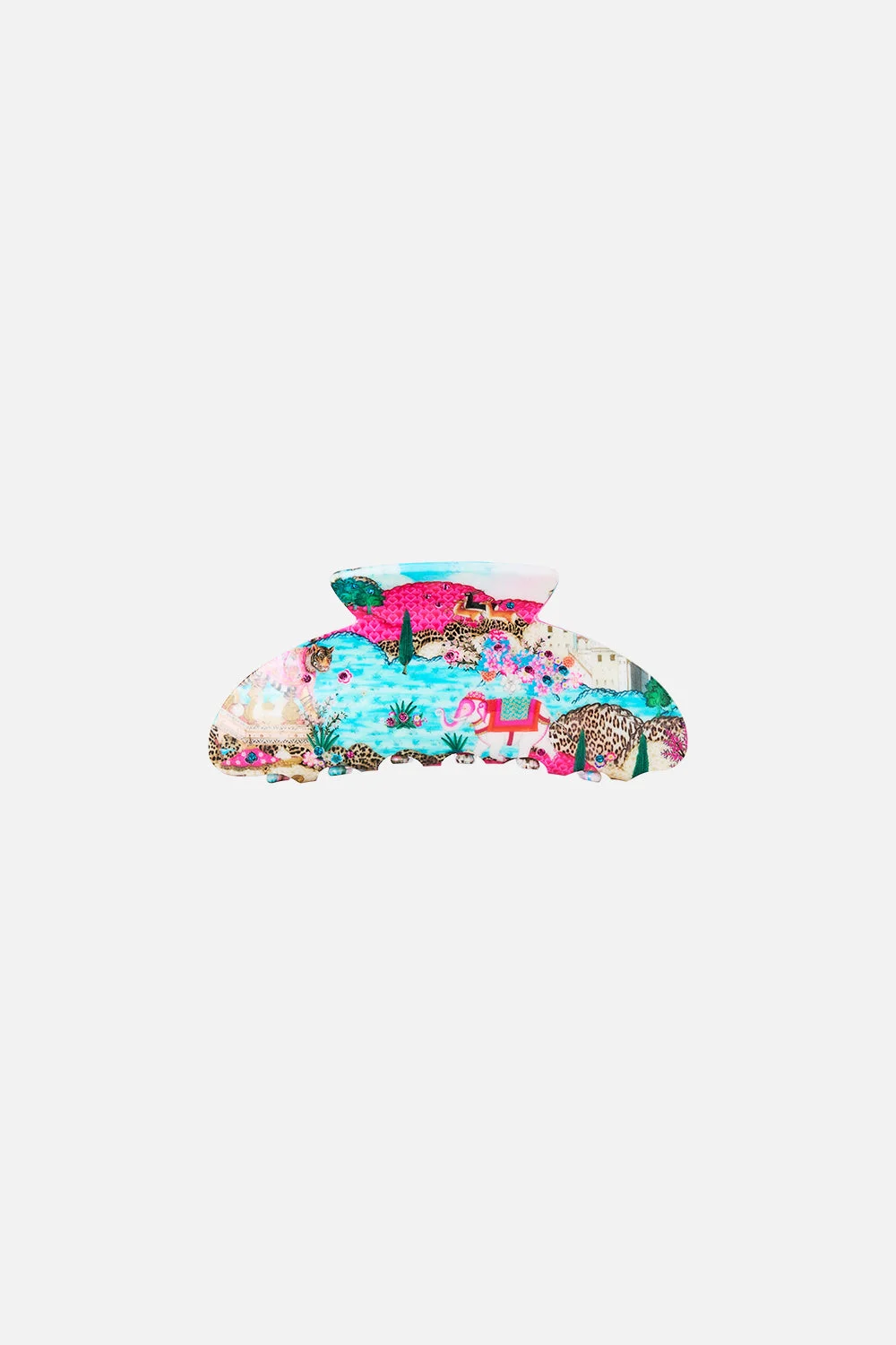 The Miniature Moments Large Hair Claw Clip is a handcrafted silhouette designed by our in house artisans. Reimagined in an exclusive limited edition print, our claw clip is made from premium French acetate with a high-gloss finish. Adorned with crystal embellishment, designed to elevate everyday hair rituals. - 100% Acetate - Camilla Printed - French Acetate - Crystal Embellished - Glossy Finish - Width 13cm SKU 00039527-MINIMOMS-O/S Size and Fit Our model wears a CAMILLA O/S and is 5'10 (178cm) tall. Her standard dress size is an AU 10. She has a 32in (83cm) bust, 35in (89.5cm) hips and a 25in (66cm) waist. Fabric and Care MAIN: 100% ACETATE