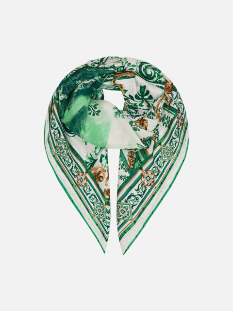 Designed in Australia, The Salty Splendour Large Square Scarf vibrantly expresses the vibrant ocean energy that mirrors Lisbon's Saint Anthony Festival, alive with music, laughter, and summer's fresh flavours. Lovingly handcrafted, this luxury silk scarf features a large expanse adorned with a bespoke print and crystal embellishments. Wear tied as a fitted summer strapless or halter top, drape around the neck or shoulders as lavish layering, or wear over swim as a resort wear shrug or sarong. This luxury silk scarf is the ultimate statement style piece. Discover versatile ways to wear the Large Square Scarf with our exclusive Style Guide . - Crystals - Printed Silk - Contrast Border SKU 00034171-SALTSPLD-O/S Fabric and Care MAIN: 100% SILK Silk twill is renowned for its diagonally-patterned weave and fluid texture. Its high thread count ensures rich density and durability, while its beautiful sheen provides a luscious touch to the skin.