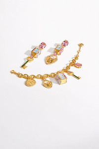 Designed in Australia, The Lockets Loaded Charm Bracelet echoes treasured charms with wanderlust spirits, fusing gilded gold and scintillating stones. Lovingly handcrafted, this lavish bracelet comprosies a custom design inspired by CAMILLA and gilded in 18K real gold.Hand cut cubic zirconia stones beautifully adorn this forever keepsake. - Gilded in 18K Gold - Solid Brass Base - Custom Design Inspired by CAMILLA - Hand Cut Cubic Zirconia Stones SKU 00039187-GOLDSUNG-O/S Size and Fit Our model wears a CAMILLA O/S and is 5'10 (178cm) tall. Her standard dress size is an AU 10. She has a 32in (83cm) bust, 35in (89.5cm) hips and a 25in (66cm) waist. Fabric and Care MAIN: 70% BRASS, 20% CUBIC ZIRCONIA, 10% GLASS