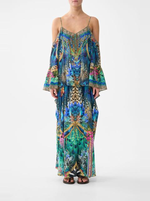 The Darling Buds Long Button Front Dress is a handcrafted silk silhouette designed by our in house artisans. Reimagined in an exclusive limited edition print, this button front dress features a softly plunging V neckline that meets a shaped waistband that cinches gently at the waist. It's finished with a double ruffled, full length hemline and elasticated back for romantic movement with every step. - 100% Silk - Long Length - Double Ruffle Hem - V Neckline - Shaped Waistband With Elastic Back - Button Through Detail - Crystal Embellishment SKU 00038595-DARLBUDS-XXS Size and Fit Our model is 5'10 (178cm) tall and wears a size S (AU 10). Bust: 40in (101.6cm) Waist: 26.5in (67cm) Hips: 38in (96.5cm) Designed and fitted true to size, take your normal size. Fabric and Care 100% SILK Designed and fitted true to size, take your normal size.