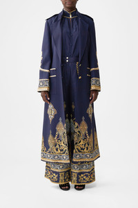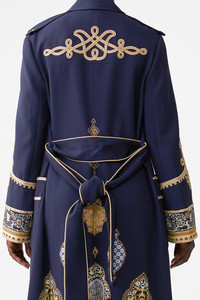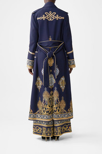 The The Imperial Gate Long Military Coat is a handcrafted silhouette designed by our in house artisans. Reimagined in an exclusive limited edition print, our longline military coat is fully lined and ornamented with shoulder epaulettes. Corded trim details add decadent details and the detachable belt offers versatility. - Corded Trim Details - Fully Lined - Shoulder Epaulettes - Detachable Belt SKU 00036610-IMPEGATE-XS Size and Fit Our model is 5'10 (178cm) tall and wears a size S (AU 10). Bust: 40in (101.6cm) Waist: 26.5in (67cm) Hips: 38in (96.5cm) Designed as a relaxed fit. Take your normal size, or select one size smaller for a neater fit. Fabric and Care 97% VISCOSE 3% ELASTANE Viscose is a fibre crafted from the natural substance, cellulose, known for its softness, breathability and drape. It possesses a subtle sheen and is perfect for lightweight soft tailored silhouettes or more structured styles in heavier weights.