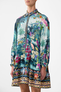 Designed in Australia, the Basked In Baroque Long Sleeve Tiered Short Dress celebrates the vivid contrasts of Igreja Matriz De Santa Maria. Painterly prints reflect its dynamic artistry, steeped in timeless energy and colour. Lovingly handcrafted, this beautiful silk mini dress showcases a relaxed style fit paired with a luscious blouson sleeve that delicately skims the arms. Completed with a button-through placket for elevated wear. - Relaxed Fit - Short Length - Long Blouson Sleeves With Elasticated Cuffs - Button Through Front - SKU 00035268-BASKBARO-XXS Size and Fit Designed as a relaxed fit—take your normal size, or select one size smaller for a neater fit. Fabric and Care 100% SILK With its subtly textured surface, silk crepe is our core fabrication made perfect for versatile wear. With its ability to hold alternative ways to wear, this decadent fabric drapes elegantly off the body whilst keeping you cool with its breathable nature.