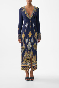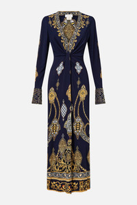 The The Imperial Gate Long V Neck Twist Front Jersey Dress is a handcrafted silhouette designed by our in house artisans. Reimagined in an exclusive limited edition print, our luxury longline jersey dress features a deep plunging V neckline that drapes effortlessly across the waist creating a twisted front design. Our stretch jersey fabric sculpts the form and crystal embellishments are intricately applied across the canvas. - Stretch Jersey Fabric - V Neckline - Drape Detail - Crystal Embellishment SKU 00036614-IMPEGATE-XXS Size and Fit Our model is 5'10 (178cm) tall and wears a size S (AU 10). Bust: 40in (101.6cm) Waist: 26.5in (67cm) Hips: 38in (96.5cm) Designed as a slim fit, take your normal size. Fabric and Care 100% VISCOSE Viscose is a fibre crafted from the natural substance, cellulose, known for its softness, breathability and drape. It possesses a subtle sheen and is perfect for lightweight soft tailored silhouettes or more structured styles in heavier weights.