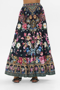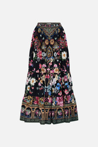 Designed in Australia, The Midnight in Monserrate Tiered Maxi Skirt celebrates the lush gardens and eclectic nineteenth-century architecture under an exsquisite midnight sky. Lovingly handcrafted, this opulent skirt is crafted from rich organic cotton poplin, featuring decadent tiers that fall gracefully into a relaxed full-length silhouette. An elastic back waistband ensures both style and personalised wearability while the voluminous hem adds a touch of drama dancing at the ankles and creating a captivating visual contrast - Elasticated Back Waistband - Crystal Embellishment - Tiered Panels - Maxi Length - Non-Sheer - SKU 00036178-MIDNMONS-XXS Size and Fit Designed as a relaxed fit, take your normal size or select one size smaller for a neater fit Fabric and Care 100% ORGANIC COTTON