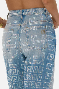 Designed in Australia, the Milla Mystic Monogram Girlfriend Jean exudes soft, washed blues, subtly highlighted by shimmering adornments. Lovingly handcrafted, these luxury denim boyfriend jeans feature a relaxed straight leg silhouette with a mid rise fit. The timeless blue wash is accented with bold hotfix embellishments, delivering the signature CAMILLA shimmer in a truly refined statement piece. - Relaxed Straight Leg - Classic Five Pockets - Metallic Hot Fix - Full Length - Fly and Button Enclosure SKU 00035050-DENIDYNA-26 Size and Fit Our model wears a CAMILLA 28 and is 5'10 (178cm) tall. Her standard dress size is an AU 10. She has a 32in (83cm) bust, 35in (89.5cm) hips and a 25in (66cm) waist. Camilla 28 = AU10 / UK10 / US6 Our More to Love Model wears a CAMILLA Size 34 and is 5'9 (182cm) tall. Her standard dress size is a AU 20. She has a 42in (107cm) bust, 35.8in (91cm) waist and 46in (118cm) hips. CAMILLA 34 = AU 16. Fabric and Care 100% COTTON CAMILLA Denim is created as wearable art and adorned with an intricate array of embellishments. Due to the highly embellished nature of this product, it requires extra love and attention during both wear and care. Please be cautious during wear, as some embellishments may catch on loose threads, pull delicate fabrics, and may damage some surfaces. Each individual garment is unique. Imperfections are part of the nature of the design and its detailed embellishments – many of which are hand-placed. This process leads to variation between pieces, which should not be considered a fault. Please be aware that crystals will loosen and detach with wear over time. Shedding crystals is a natural occurrence, which is why we supply additional crystals and embellishments with your purchase, which can be reapplied as needed.
