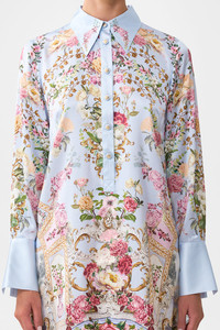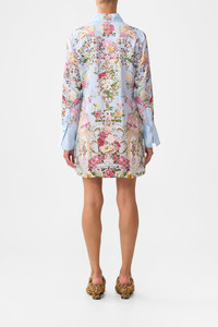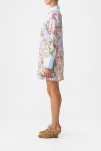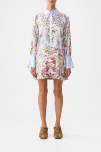 The Tiled In Time Mini Shirt Dress is a handcrafted silk silhouette designed by our in house artisans. Reimagined in an exclusive limited edition print, our mini shirt dress features elevated collar and cuffed sleeve details. It's finished with intricately placed crystal embellishment. - 100% Silk - Front Placket - Sleeve Cuff - Collar Detail - Crystal Embellishment SKU 00039520-TILETIME-XXS Size and Fit Our model is 5'10 (178cm) tall and wears a size S (AU 10). Bust: 40in (101.6cm) Waist: 26.5in (67cm) Hips: 38in (96.5cm) Fabric and Care 100% SILK WOVEN Silk satin embodies a sumptuously smooth finish that offers a rich buttery touch to the skin. As a result of the satin weaving technique, it masterfully creates a fuller bounce to the body and drape details.
