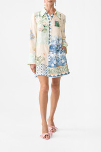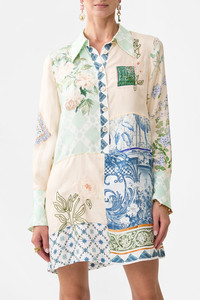 Designed in Australia, The Jardim Party Mini Shirt Dress invites you to the Palacio De Estoi, Portugal's "Pink Palace," weaving romantic florals with rococo arches and intricate tiles, echoing the whimsy of Versailles-style gardens. Lovingly handcrafted, this CAMILLA silk midi dress showcases a sleek square neckline at the front that falls into a straight column silhouette that softly skims the body to a mid-calf hemline. The adjustable straps and centre-back invisible zip accentuate the sophisticated line whilst providing effortless wearability. - Front Placket - Collar Detail - Long Sleeve With Cuff Detail - Crystal Embellishment - Short Length - Non-Sheer SKU 00033714-JARDPART-XXS Size and Fit Our model wears a CAMILLA S and is 5'10 (178cm) tall. Her standard dress size is an AU 10. She has a 32in (83cm) bust, 35in (89.5cm) hips and a 25in (66cm) waist. CAMILLA Size S = AU10 / UK10 / US6 Our More to Love Model wears a CAMILLA Size 3XL and is 5'9 (182cm) tall. Her standard dress size is a AU 20. She has a 42in (107cm) bust, 35.8in (91cm) waist and 46in (118cm) hips. CAMILLA Size 3XL = AU20 / UK20 / US16 Designed and fitted true to size, take your normal size Fabric and Care 100% SILK Silk twill is renowned for its diagonally-patterned weave and fluid texture. Its high thread count ensures rich density and durability, while its beautiful sheen provides a luscious touch to the skin.