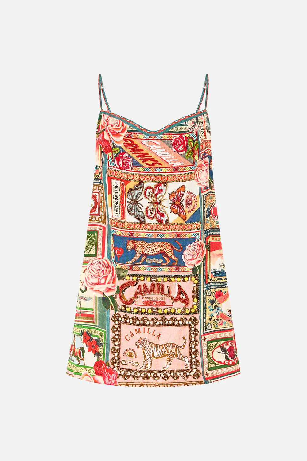 Taking 107 hours to complete, the Minimal Shift Dress is a study in refined simplicity elevated through intricate hand embroidery. Crafted by skilled artisans, the silhouette is adorned with a fusion of neon beads, sequins, wooden beads, glass bugles and rhinestones, each element meticulously placed to create a subtle play of texture, colour and light. A modern interpretation of CAMILLA craftsmanship, this piece celebrates contrast, minimalist in form yet maximal in artistry, a true expression of creativity and devotion. The High Class Hookah Minimal Shift Dress is a handcrafted silhouette designed by our in house artisans. Reimagined in an exclusive limited edition print, this shift dress is cut in an a line shape that falls to a short hemline. Its adjustable straps add versatility and a back zip fastening offers effortless wear. - 100% Linen - A-Line Shape - Shaped Bust - Adjustable Straps - Mini Length - Embroidery Details - Linen SKU 00038720-HIGHHOOK-XS Size and Fit Our model is 5'10 (178cm) tall and wears a size S (AU 10). Bust: 40in (101.6cm) Waist: 26.5in (67cm) Hips: 38in (96.5cm) Designed and fitted true to size, take your normal size. Fabric and Care 100% LINEN Made from flax fibres, this lightweight natural fibre offers a timeless aesthetic that adds durability and longevity to any wardrobe. Its breathability keeps your skin cool, minimises moisture and ensures effortless comfort.