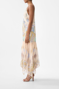 The East Of Istanbul Minimal Slip With Pleated Chiffon Skirt is a handcrafted silk silhouette designed by our in house artisans. Reimagined in an exclusive limited edition print, our minimal slip dress is slim fitting around the bodice and cascades into a delicate, full length skirt. Elevated with a pleated chiffon skirt that dances just above ankle length, it's finished with adjustable straps for effortless wear. - 100% Silk - Slim Fit Bodice - Long Length - Adjustable Straps - Pleated Chiffon Skirt SKU 00036632-EASTISTA-XXS Size and Fit Our model is 5'10 (178cm) tall and wears a size S (AU 10). Bust: 40in (101.6cm) Waist: 26.5in (67cm) Hips: 38in (96.5cm) Designed as a relaxed silhouette. Take your normal size, or select one size smaller for a neater fit. Fabric and Care 100% SILK (CDC) With its subtly textured surface, silk crepe is our core fabrication made perfect for versatile wear. With its ability to hold alternative ways to wear, this decadent fabric drapes elegantly off the body whilst keeping you cool with its breathable nature.