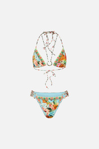 Designed in Australia, the Bathing Bombshell Ring Tri Multi Strap Bikini Set evokes a vibrant symphony of blooms that encapsulate crystalline waves, sun-soaked moments linger as an ode to Portugal's decadent artistry. Lovingly handcrafted, this bikini set features ring trim details and multi-wear front straps. Softly gathered sides and cheeky bottom coverage offer a flattering fit, while crystal embellishments add a touch of sparkle. - Fits B-C Cup - Ring Trim Detail - Cheeky Bottom Coverage - Removable Soft Cups - Multi Front Wear Straps - Crystal Embellishment SKU 00035451-BATHBOMB-XS Fabric and Care MAIN: 82% REGENERATED POLYAMIDE, 18% ELASTANE ECONYL® is regenerated nylon, crafted from waste materials that would otherwise end up polluting our Mother Earth. Its beauty lies in its ability to be recycled, remoulded and ultimately reused time and time again. An infinitely recyclable product that keeps our planet looking beautiful, it opens the door to a circular fashion sphere.