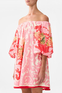 Designed in Australia, the Pink Porto Off Shoulder Puff Dress refines blossoming romance, floral gardens dance along pastel pink mosaics kissed with red touches. Lovingly handcrafted, this show stopping statement party mini dress features off the shoulder puff sleeves that billow and taper at elbow length. - Relaxed Fit - Short Length - 3/4 Sleeve Length - Elasticated Neck Edge - Off Shoulder - SKU 00035058-PINKPORT-XXS Size and Fit Designed as a relaxed fit—take your normal size, or select one size smaller for a neater fit. Fabric and Care 100% ORGANIC COTTON Organic cotton poplin is sumptuously smooth with a crisp, refined weave. This lightweight silken fabric drapes beautifully and is ideal for sleek contours and tailored, defined styles.
