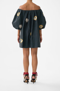 The Amulets And Alchemy Off Shoulder Puff Dress is a handcrafted silhouette designed by our in house artisans. Reimagined in an exclusive limited edition print, this romantic mini dress is relaxed fitting and sits off the shoulder with an elasticated neck edge framed with 3/4 sleeves. Its finished with intricately placed crystal embellishments for luminous detail. - Relaxed Fit - Short Length - 3/4 Sleeve Length - Elasticated Neck Edge - Elasticated Sleeve Hem - Crystal Embellishment SKU 00040994-AMULALCH-XS Size and Fit Our model is 5'10 (178cm) tall and wears a size S (AU 10). Bust: 40in (101.6cm) Waist: 26.5in (67cm) Hips: 38in (96.5cm) Fabric and Care 100% POLYSTER