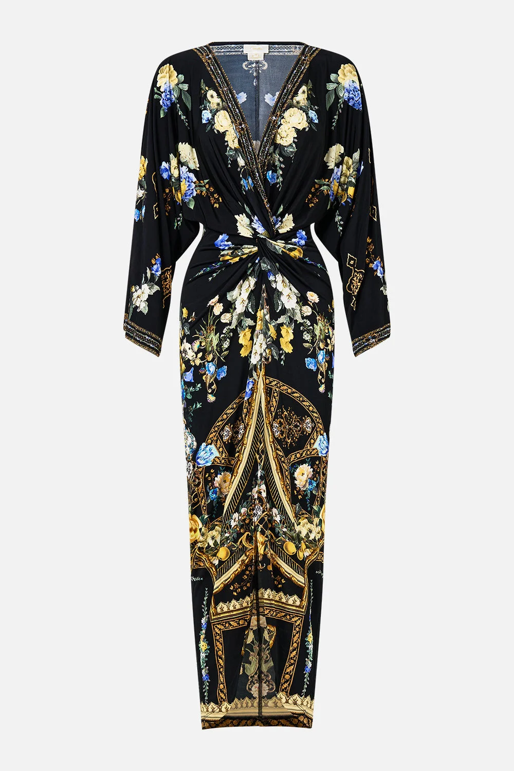 The Ottoman Elegance Long Split Front Twist Dress is a handcrafted silhouette designed by our in house artisans. Reimagined in an exclusive limited edition print, our maxi front twist dress features a v neckline and flared sleeves. A full length skirt is finished with a front split for dramatic movement. - V Neckline - Long Length - Flared Sleeve - Front Split SKU 00036701-OTTOELEG-XXS Size and Fit Our model is 5'10 (178cm) tall and wears a size S (AU 10). Bust: 40in (101.6cm) Waist: 26.5in (67cm) Hips: 38in (96.5cm) Fabric and Care 92% VISCOSE 8% ELASTANE Viscose is a fibre crafted from the natural substance, cellulose, known for its softness, breathability and drape. It possesses a subtle sheen and is perfect for lightweight soft tailored silhouettes or more structured styles in heavier weights.