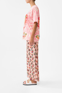 Designed in Australia, the Pink Porto Oversized Band Tee refines blossoming romance, floral gardens dance along pastel pink mosaics kissed with red touches. Lovingly handcrafted, this luxury graphic tee features a relaxed oversized fit throughout the body that falls to a slightly longer line silhouette. The timeless round neckline and relaxed short sleeves paired with a bespoke placement print embodies understated opulence. - Crystal Embellishment - Round Neckline - Oversized Fit - Short Sleeve - SKU 00035546-PINKPORT-XS Size and Fit Our model wears a CAMILLA S and is 5'10 (178cm) tall. Her standard dress size is an AU 10. She has a 32in (83cm) bust, 35in (89.5cm) hips and a 25in (66cm) waist. Camilla S = AU10 / UK10 / US6 Designed as a relaxed fit—take your normal size, or select one size smaller for a neater fit. Fabric and Care SHELL-'100% COTTON , CONST- 96% COTTON 4% SDPANDEX Organic cotton is breathable, lightweight fabric. With a natural texture, it holds its shape gracefully and is perfect for soft, everyday silhouettes.