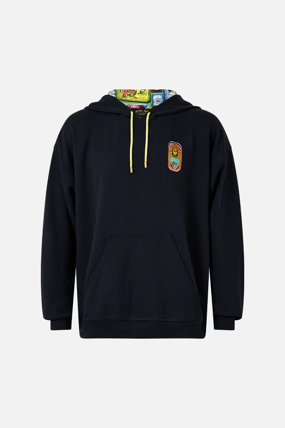 Designed in Australia, The Sal Do Mar Oversized Relaxed Fit Hoodie invites you to Portugal’s coast, where bold CAMILLA sardine cans celebrate the sea. A vibrant nod to Lisbon’s Saint Anthony Festival of music, laughter, and fresh flavours. Lovingly handcrafted, this luxury men’s hoodie features a relaxed oversized fit that tapers into a ribbed hemline. The generous full-length sleeves and hood add a sculptural element to the silhouette. - Relaxed Oversized Fit - Front Joey Pocket - Dropped Shoulder - Ribbed Hem And Sleeve Cuff SKU 00033818-SALDOMAR-XS Size and Fit Our model wears a CAMILLA Mens M and is 6'2 (188cm) tall. He has a 38in (98cm) Chest, 32in (81cm) waist Designed as a relaxed fit, take your normal size or select one size smaller for a neater fit Fabric and Care MAIN: 53% COTTON, 35% MODAL, 12% LYCRA