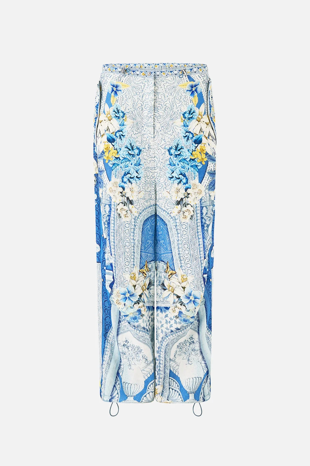 The De Nada Granada Parachute Pant is a handcrafted silhouette designed by our in-house artisans. Conceived in an exclusive limited edition print, these linen parachute pants exude luxurious comfort with an elasticated waist and functional pockets featuring press studs for effortless wear. These pants are decadently detailed, with embroidery on pocket flaps and finished with intricately placed crystal embellishments for a luminous look. - 100% Linen - Pockets - Press Studs - Elasticated Waist - Wide Leg - Crystal Embellishment SKU 00040699-DENADAGR-XXS Size and Fit Our model is 5'10 (178cm) tall and wears a size S (AU 10). Bust: 40in (101.6cm) Waist: 26.5in (67cm) Hips: 38in (96.5cm) Designed as a relaxed fit. Take your normal size, or select one size smaller for a neater fit. Fabric and Care 100% LINEN Made from flax fibres, this lightweight natural fibre offers a timeless aesthetic that adds durability and longevity to any wardrobe. Its breathability keeps your skin cool, minimises moisture and ensures effortless comfort.