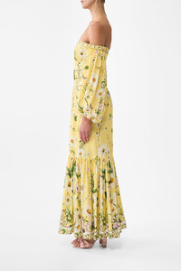 Designed in Australia, the Daisy Chains Puff Sleeve Corset Dress celebrates golden fields and sunlit days. Daisies and multi botanicals weave through textiles, lace and tapestries, telling a story of carefree wonder. Lovingly handcrafted, this puff-sleeve corset dress exudes sensuality with its off-shoulder design and fitted corset bodice. The voluminous sleeves and removable belt accentuate the figure, creating a streamlined silhouette. - Off Shoulder Style - Blouson Sleeve - Fitted Corset Bodice - Removable Belt - Maxi Length SKU 00035673-DAISCHAN-S Fabric and Care 82% LINEN 18% SILK Silk Linen is a beautiful combination of natural fabrics which blend into a luxurious, soft and smooth texture. Cool to touch with a subtle sheen and luster from silk components, its breathable, durable and has a crisp, textured hand feel.