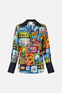 Designed in Australia, The Sal Do Mar Pyjama Shirt invites you to Portugal’s coast, where bold CAMILLA sardine cans celebrate the sea. A vibrant nod to Lisbon’s Saint Anthony Festival of music, laughter, and fresh flavours. Lovingly handcrafted, this CAMILLA silk pyjama shirt features a relaxed fit throughout the body that falls to a hip-length hemline. The relaxed long sleeves feature wide split cuffs that drape beautifully at the wrist. - Loose Fit - Button Closure - Wide Cuff - Silk Twill - Crystal Embellishment - Non-Sheer SKU 00033911-SALDOMAR-XXS Size and Fit Designed as a relaxed fit, take your normal size or select one size smaller for a neater fit Fabric and Care 100% SILK Silk twill is renowned for its diagonally-patterned weave and fluid texture. Its high thread count ensures rich density and durability, while its beautiful sheen provides a luscious touch to the skin.