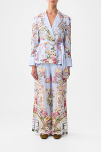The Tiled In Time Pyjama Suit Jacket is a handcrafted silhouette designed by our in house artisans. Reimagined in an exclusive limited edition print, our suit jacket is relaxed fitting and features a button front closure for effortless wear. It's decorated with a detachable tie and chest pocket details for versatility. - Relaxed Fit - Detachable Tie - Button Front Closure - Chest Pockets SKU 00039473-TILETIME-XXS Size and Fit Our model is 5'10 (178cm) tall and wears a size S (AU 10). Bust: 40in (101.6cm) Waist: 26.5in (67cm) Hips: 38in (96.5cm) Fabric and Care 70% VISCOSE 30% SILK